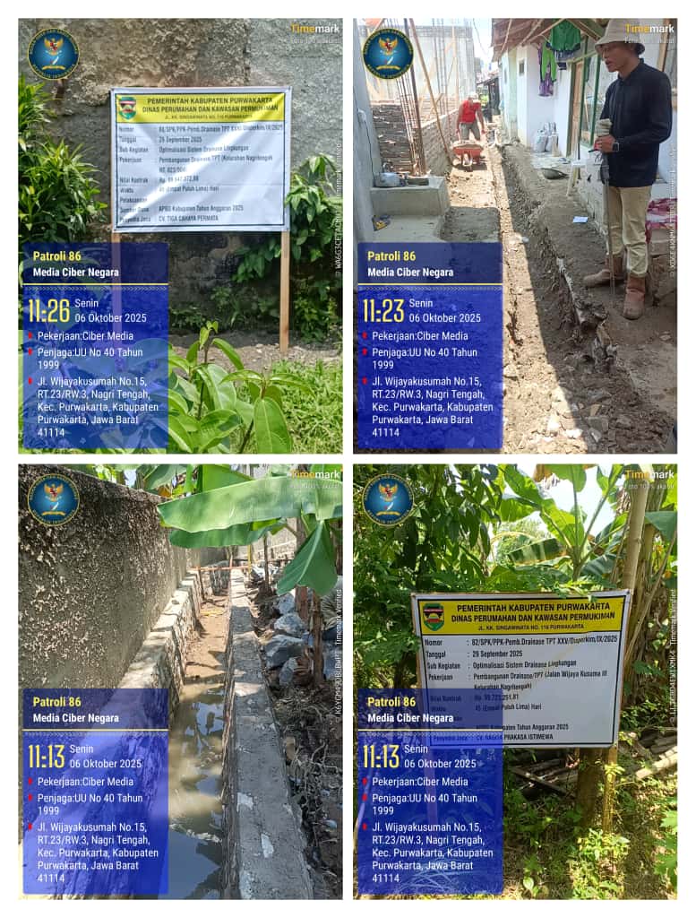 Purwakarta | Fokustajam.com – Pembangunan dan perbaikan saluran drainase serta pemasangan U-Ditch di Kelurahan Nagri Tengah, Kabupaten Purwakarta, tepatnya di RT 34/RW 03, mendapat sambutan positif dari warga sekitar.(Senin, 6 Oktober 2025)
